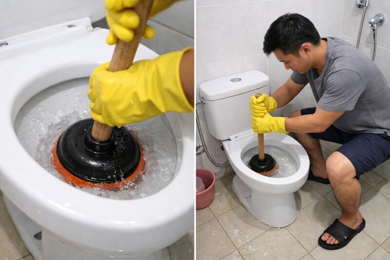 Thông nghẹt bồn cầu bằng pittong cao su